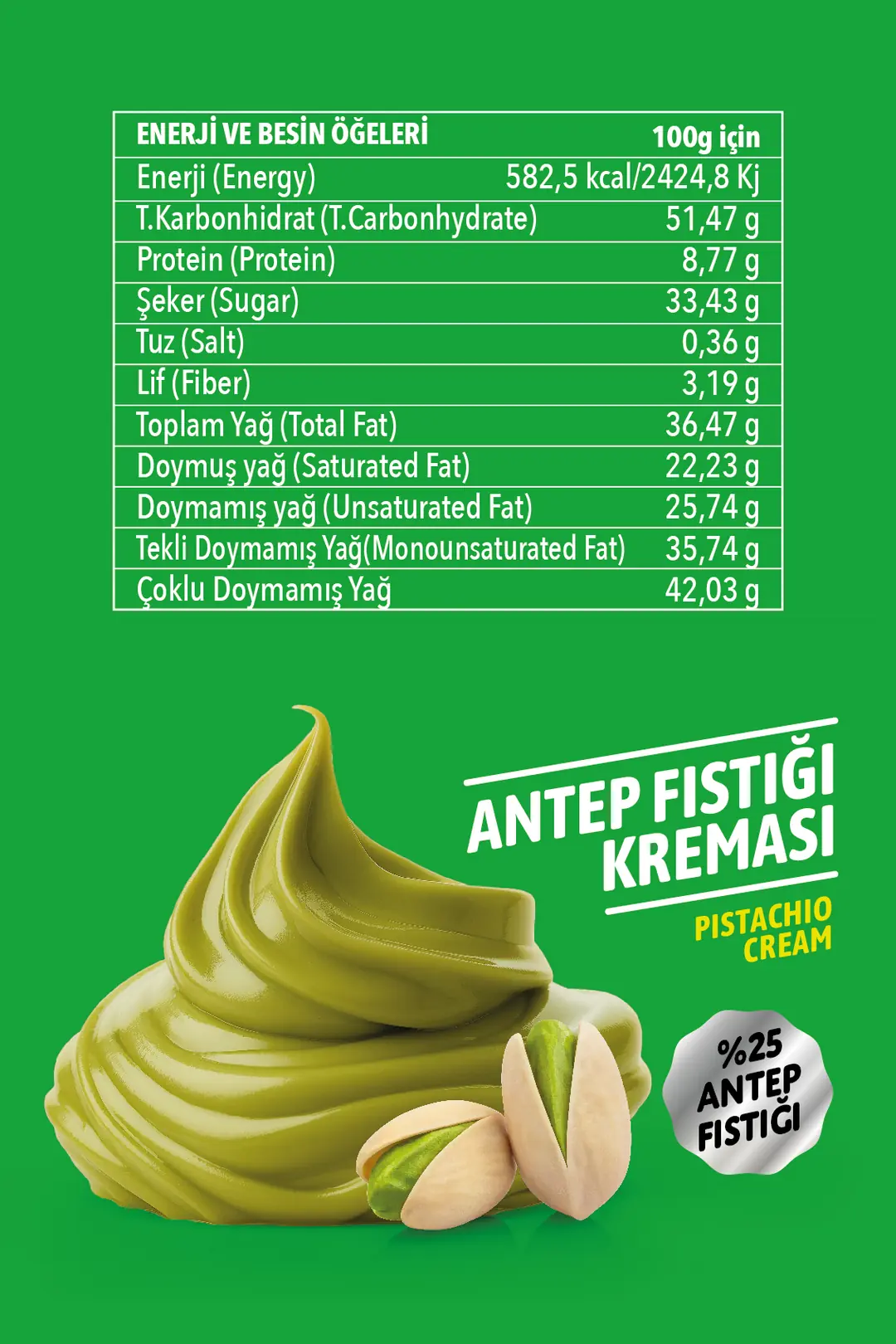 %25 gerçek Antep fıstığı içeriği